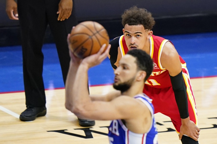 特雷-杨谈西蒙斯空篮不上名场面:我只是吓唬了他一下 假装要盖他