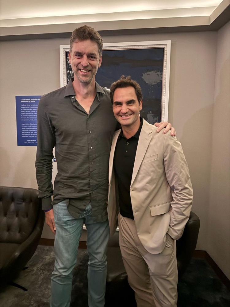 保罗-加索尔晒和网球名将费德勒合影:每次和你聊天都很开心