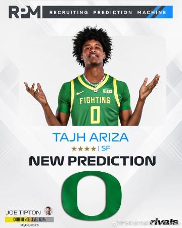 10月3日讯 欧洲篮球及选秀专家王健更新社媒表示,外界目前都预测阿里扎之子塔基-阿里扎(Tajh Ariza)会承诺俄勒冈大学,明日他将在正式官宣。